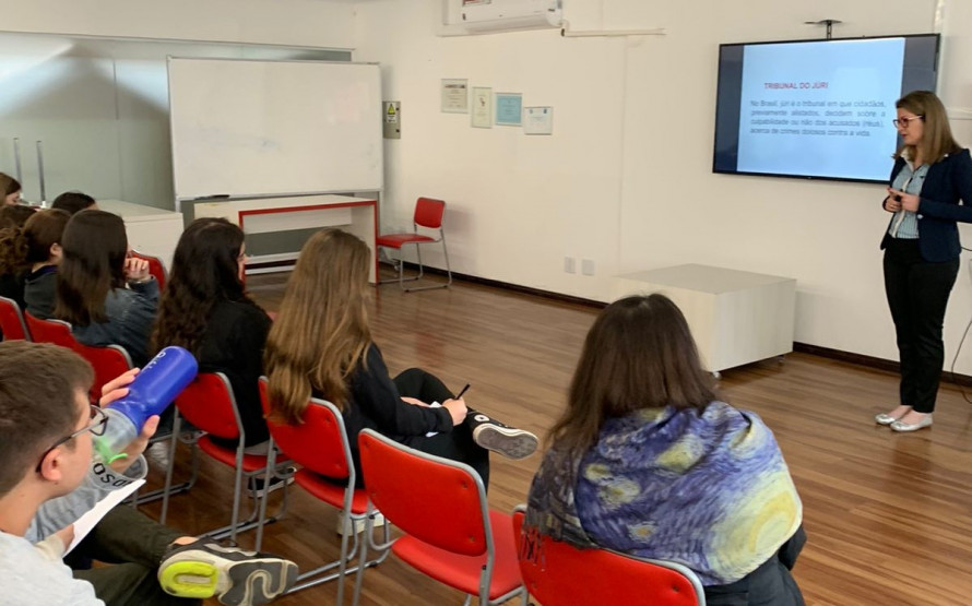O colégio realizará, no decorrer do segundo semestre, um júri simulado, e a palestra da promotora aconteceu em preparação a essa atividade. Além de abordar de maneira geral os temas já mencionados, a associada deu ênfase também no tema violência contra mulher.