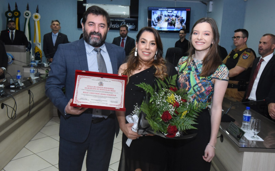 A associada Kele Cristiani Diogo Bahena e o associado Joel Carlos Beffa receberam, respectivamente, os títulos de Cidadã e Cidadão Honorários de Wenceslau Braz, pelos relevantes serviços prestados ao município. A solenidade de entrega da honraria foi realizada na Câmara Municipal de Wenceslau Braz, no dia 11 de agosto.